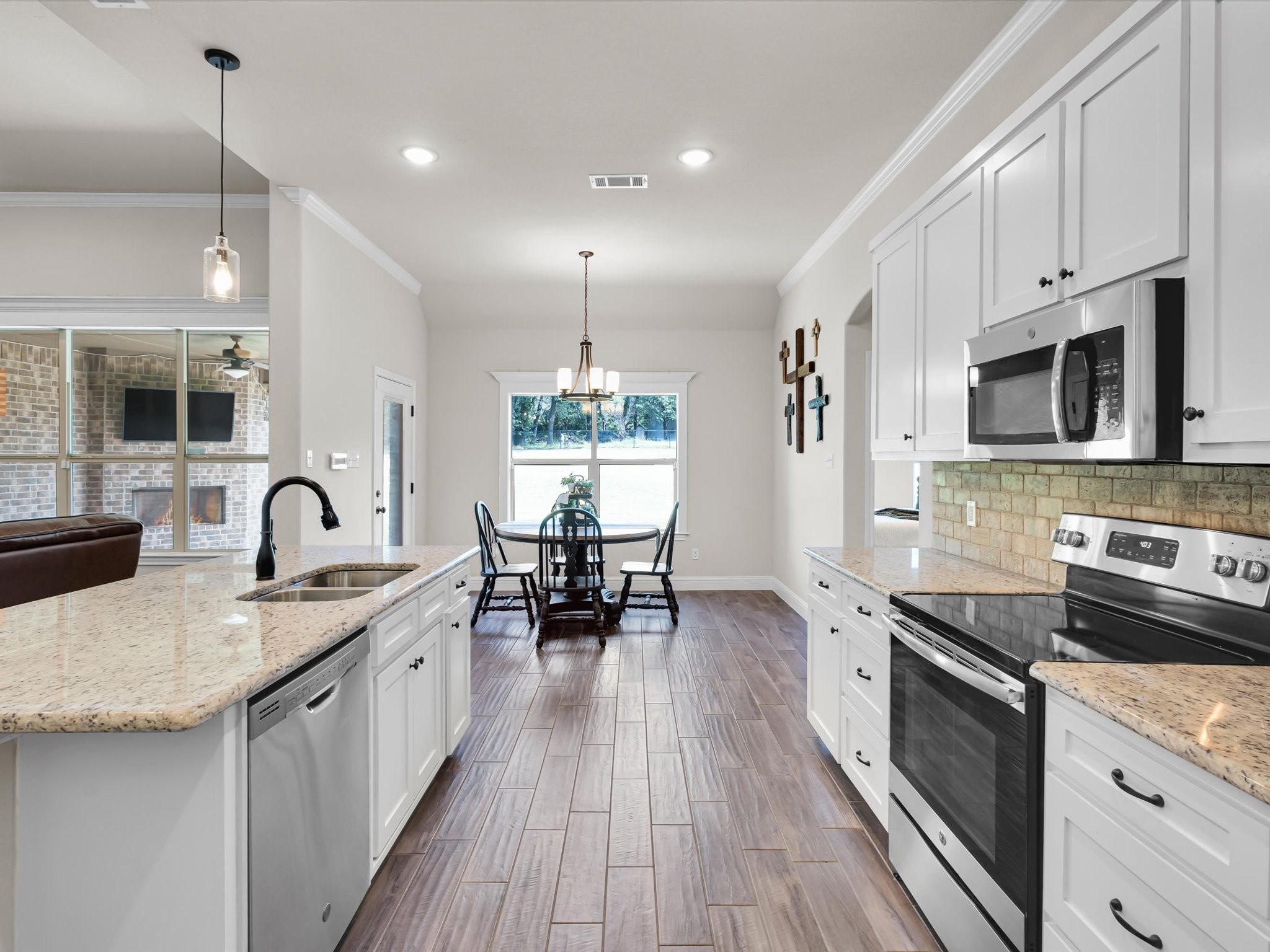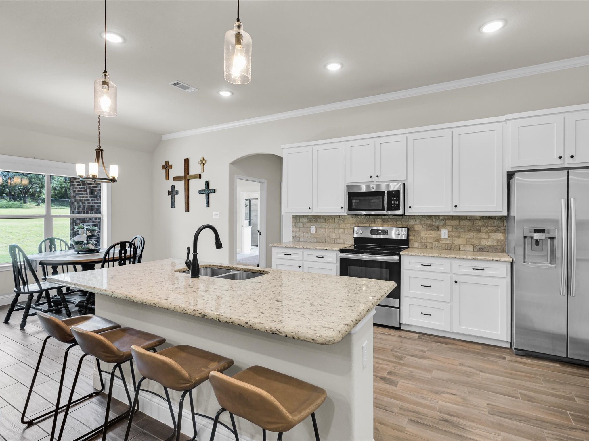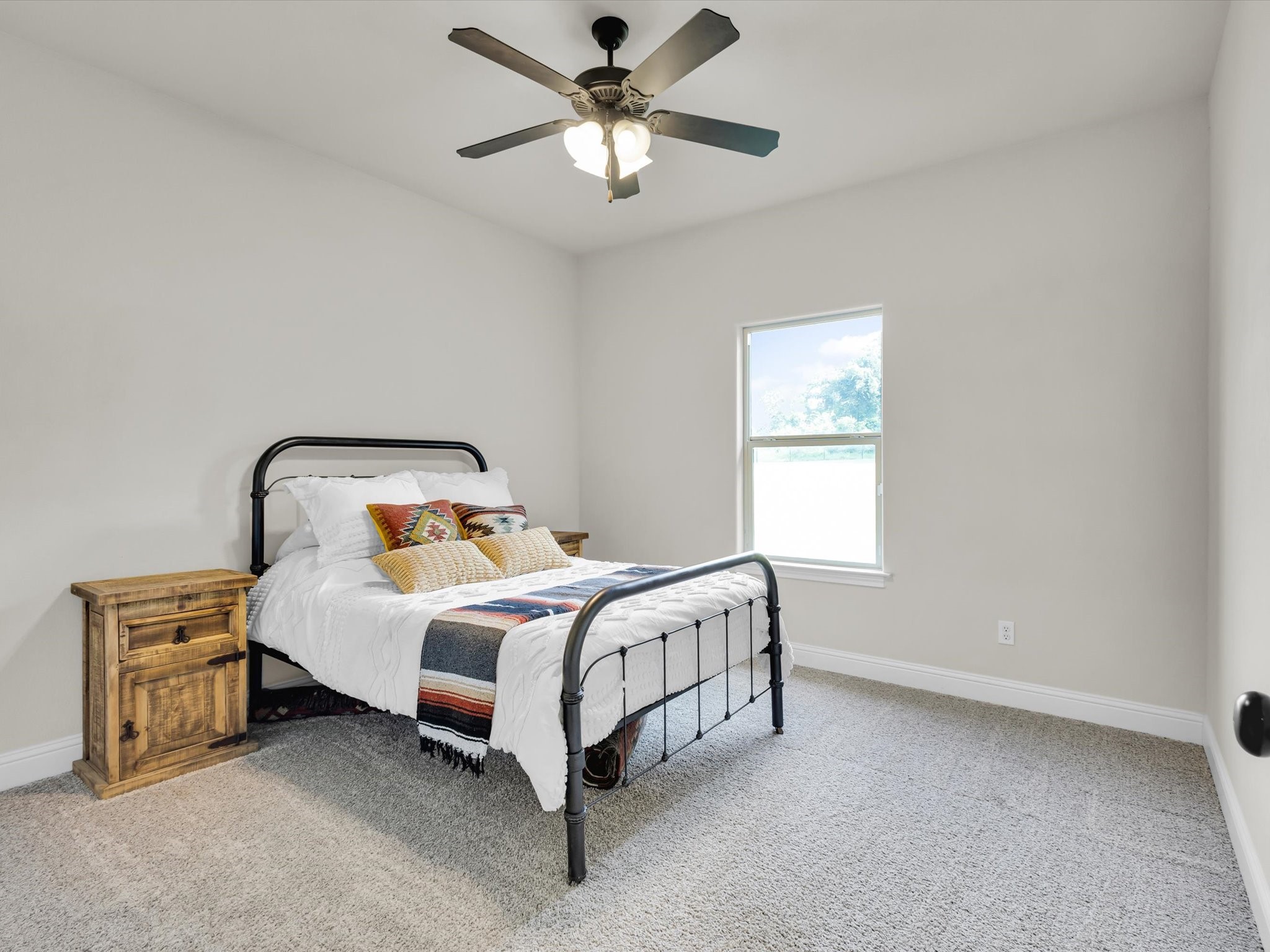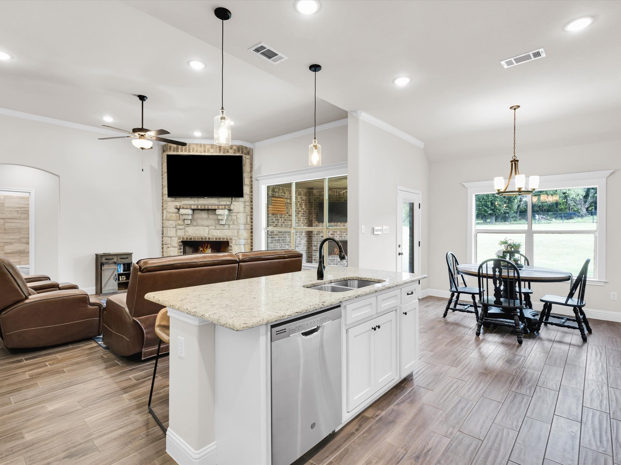 Welcome to your perfect blend of comfort, space, and privacy! This charming 4-bedroom, 2-bathroom home offers 1,929 square feet of thoughtfully designed living space, situated on a sprawling 1.63-acre lot. Inside, you'll find an open-concept layout that seamlessly connects the living, dining, and kitchen areas--ideal for both everyday living and entertaining. The kitchen is a standout with elegant quartz countertops and a large walk-in pantry that provides ample storage and organization. The spacious master suite features a beautifully appointed bathroom with a large walk-in shower, relaxing soaker tub, and dual vanities. One of the home's most convenient features is the smart floor plan that allows the laundry room to connect directly to the master closet, adding ease and efficiency to your daily routine. Step outside to the inviting back porch, where a beautiful fireplace creates the perfect setting for relaxing evenings or year-round gatherings. The entire property is fully fenced with a durable pipe fence, offering security and peace of mind, whether for pets, play, or simply enjoying your land. Nestled on a quiet street with only about 15 homes, with no HOA, this property offers a rare combination of tranquility and community. Don't miss this opportunity to own a slice of country serenity with all the modern comforts!