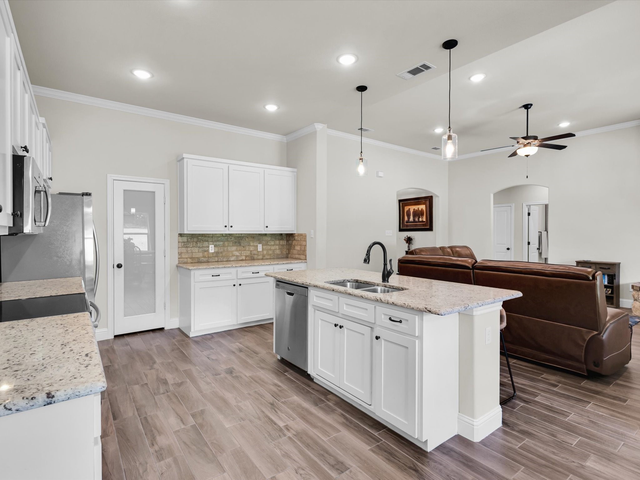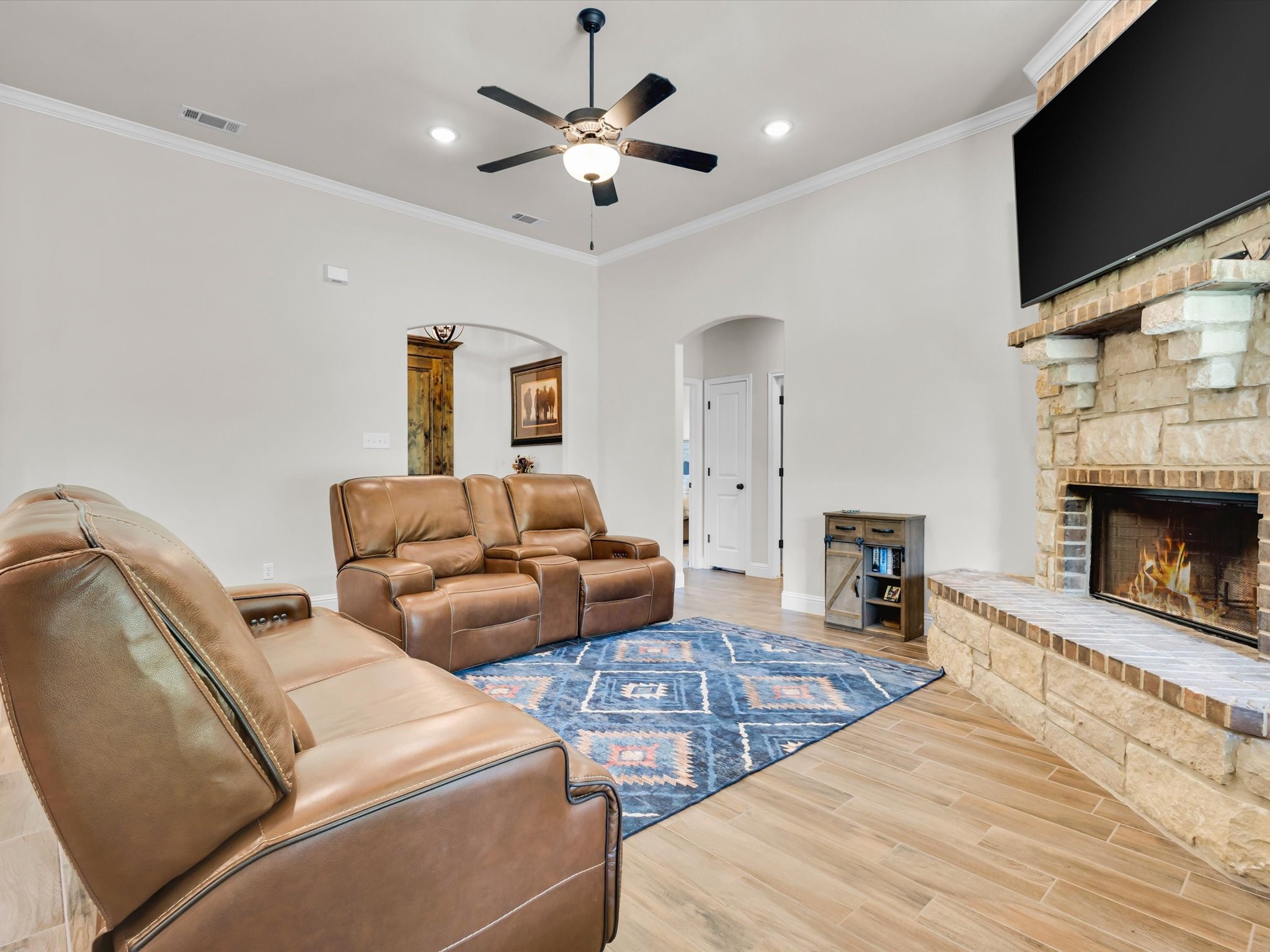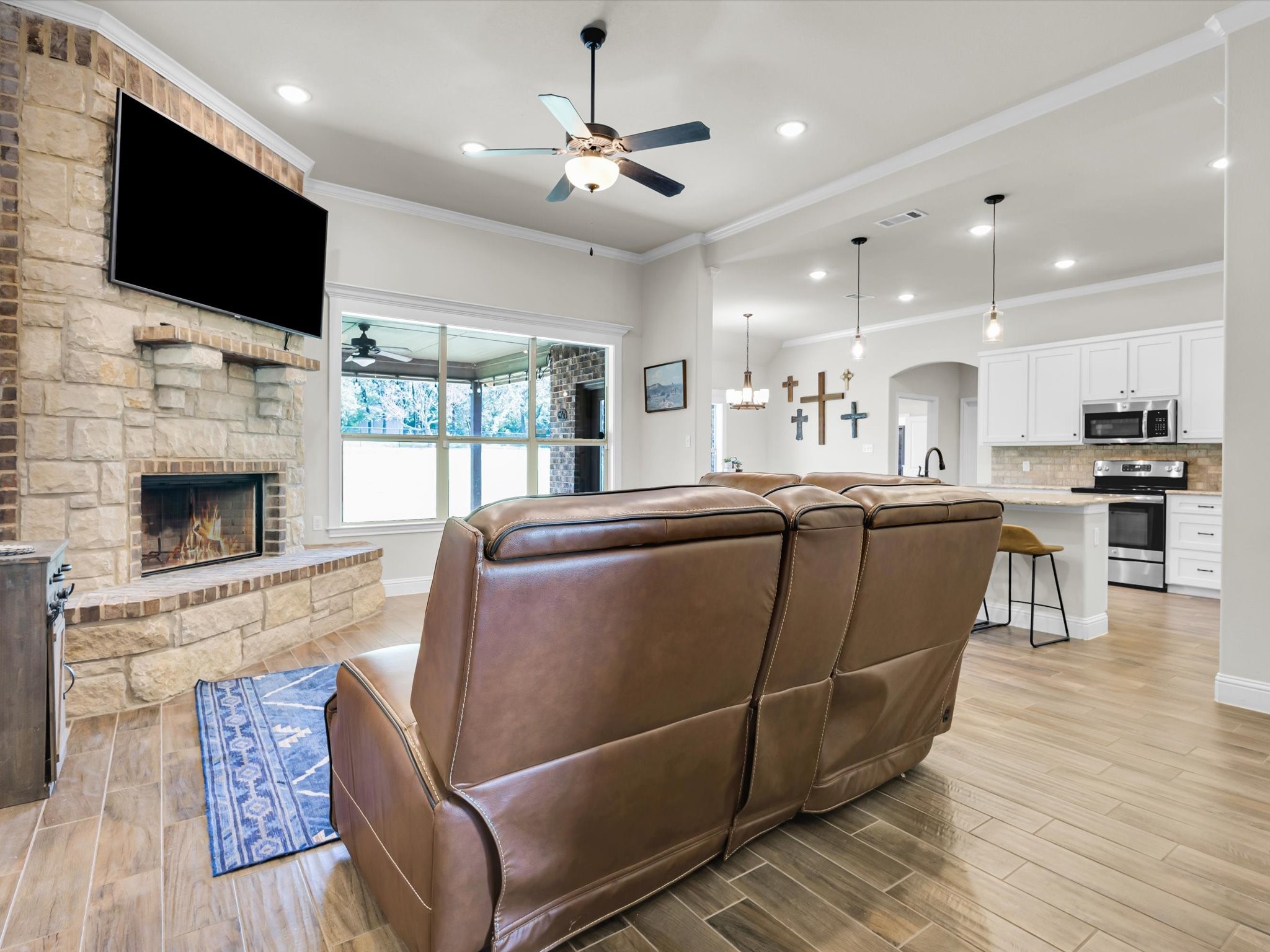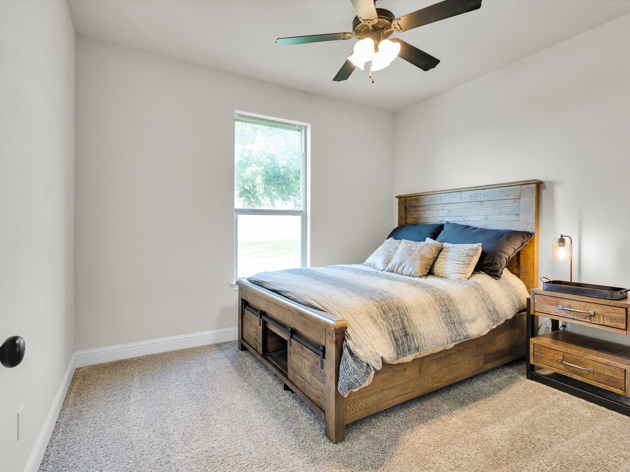 Welcome to your perfect blend of comfort, space, and privacy! This charming 4-bedroom, 2-bathroom home offers 1,929 square feet of thoughtfully designed living space, situated on a sprawling 1.63-acre lot. Inside, you'll find an open-concept layout that seamlessly connects the living, dining, and kitchen areas--ideal for both everyday living and entertaining. The kitchen is a standout with elegant quartz countertops and a large walk-in pantry that provides ample storage and organization. The spacious master suite features a beautifully appointed bathroom with a large walk-in shower, relaxing soaker tub, and dual vanities. One of the home's most convenient features is the smart floor plan that allows the laundry room to connect directly to the master closet, adding ease and efficiency to your daily routine. Step outside to the inviting back porch, where a beautiful fireplace creates the perfect setting for relaxing evenings or year-round gatherings. The entire property is fully fenced with a durable pipe fence, offering security and peace of mind, whether for pets, play, or simply enjoying your land. Nestled on a quiet street with only about 15 homes, with no HOA, this property offers a rare combination of tranquility and community. Don't miss this opportunity to own a slice of country serenity with all the modern comforts!