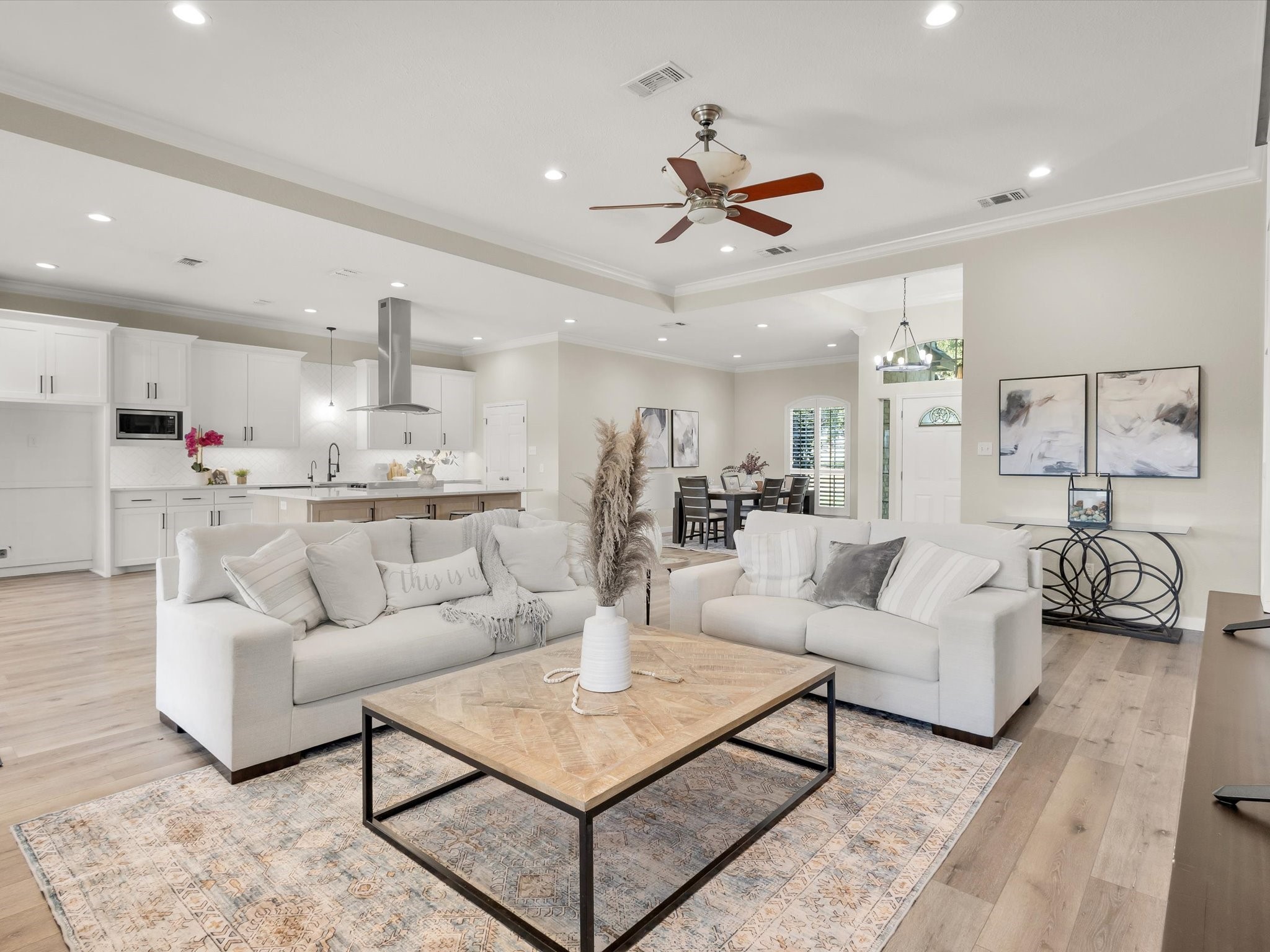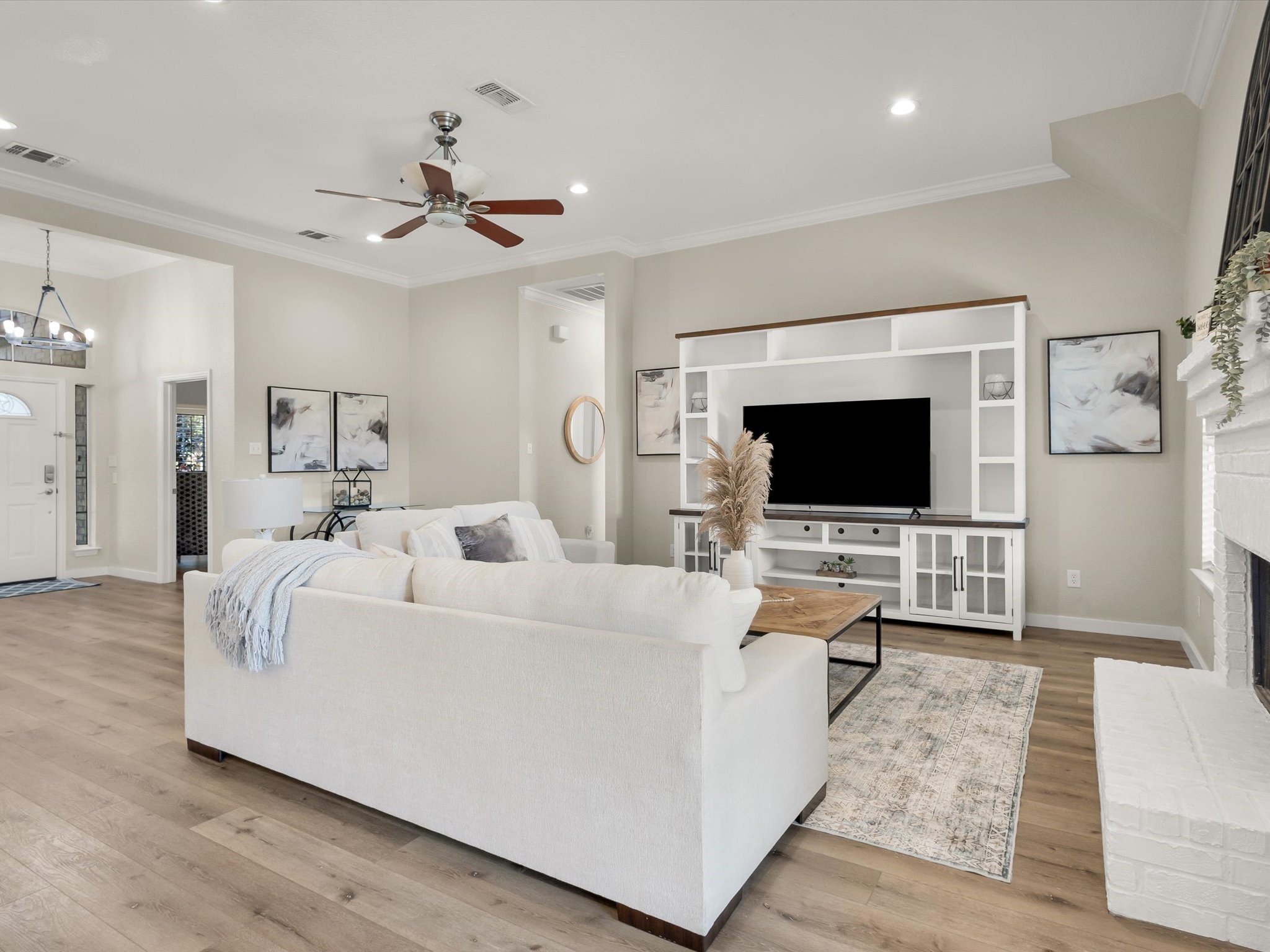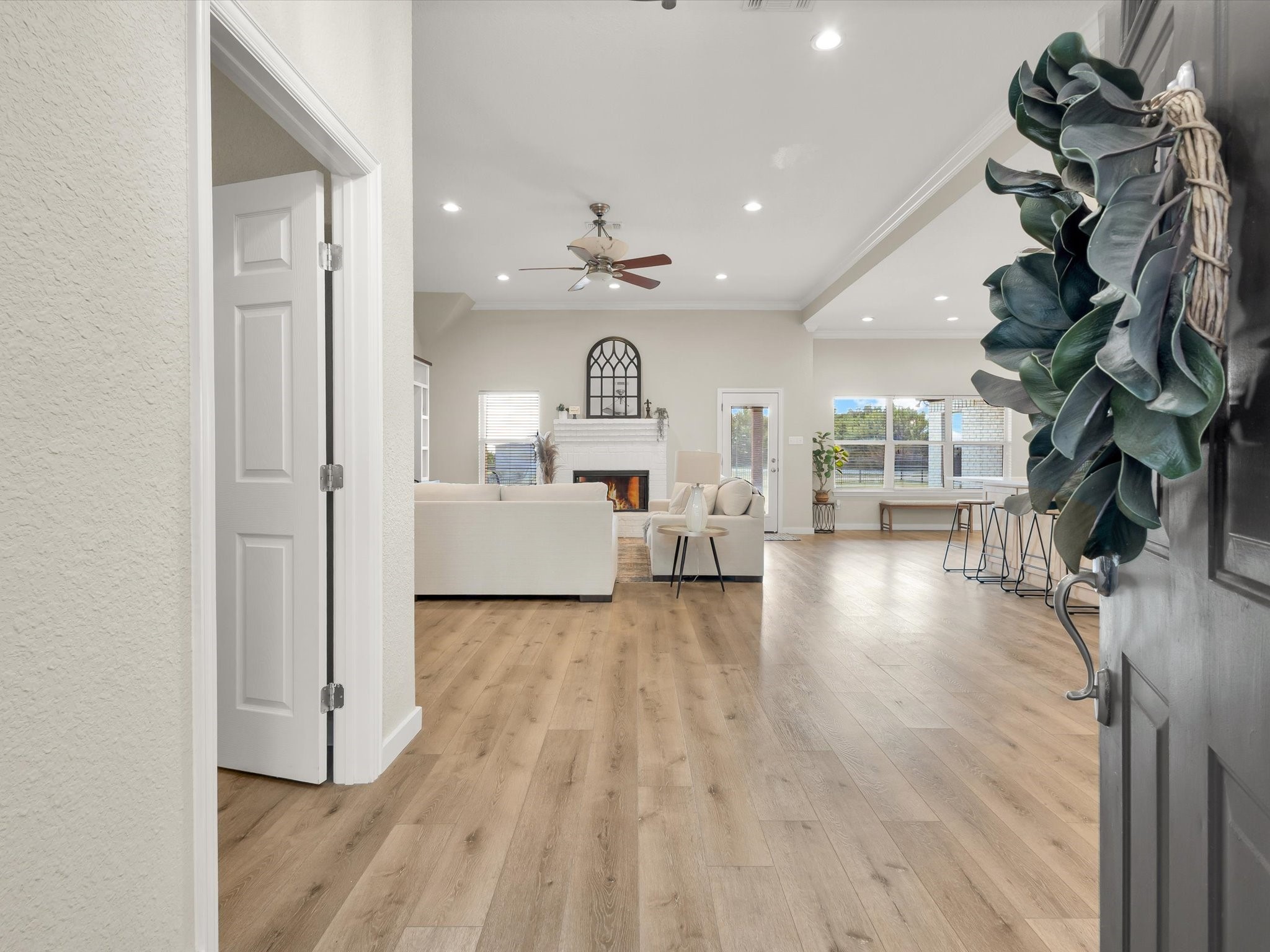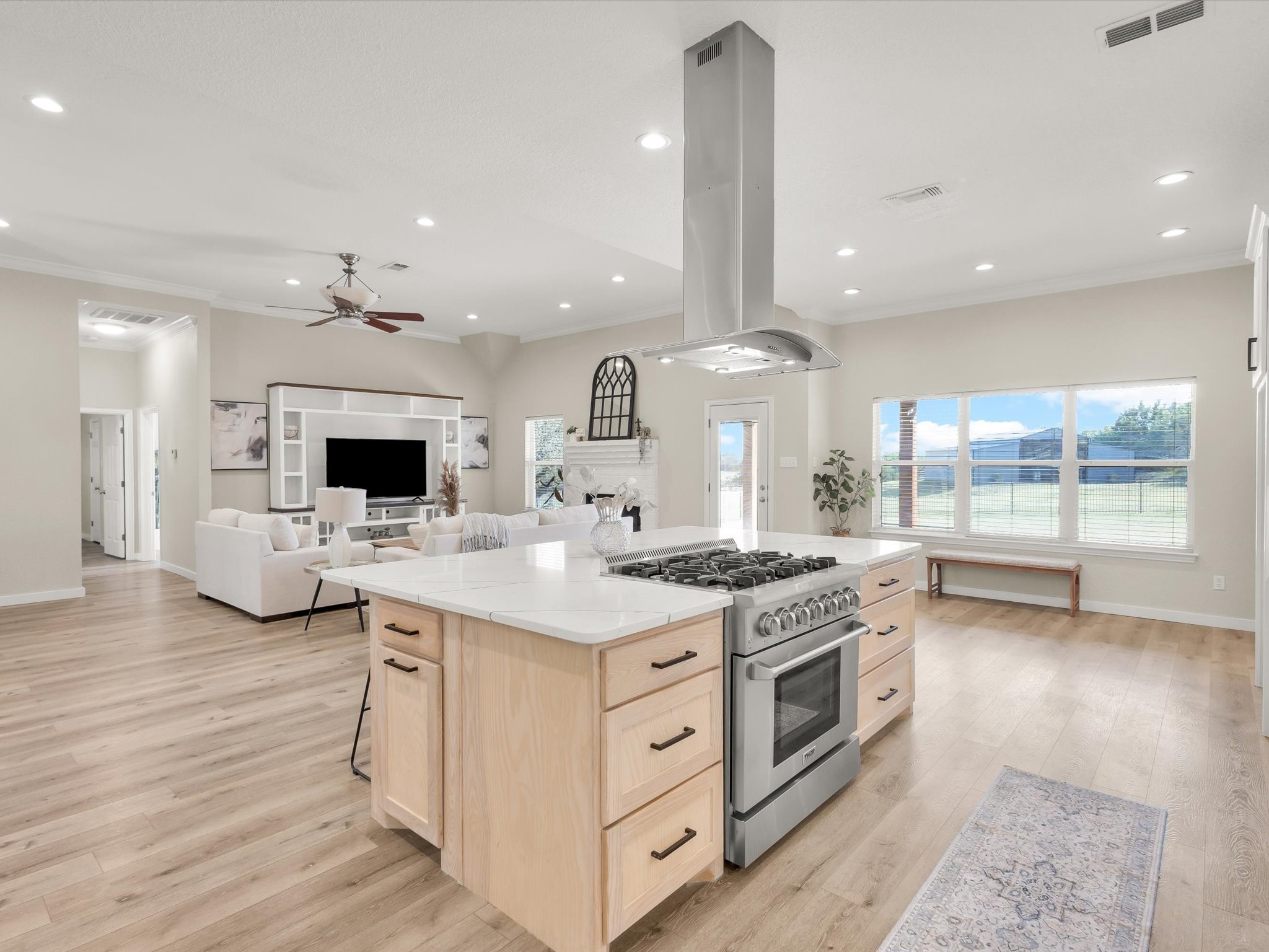 Welcome to your own slice of Texas paradise! Situated on 8.3 AG-EXEMPT ACRES, NO CITY TAX OR WATER BILL, this ranch captures the essence of wide-open spaces, freedom, and Southern charm while offering a beautifully remodeled 3,147 sq ft home with 4 bedrooms, 3 full baths, 2 primary suites, an upstairs flex area for additional office space, game room or home gym. The open layout features a chef's kitchen, Stainless steel appliances, abundant quartz counter space and a GAS cooktop, ideal for entertaining and family gatherings, while a centrally located wood-burning fireplace adds warmth and character. A brand-new roof and patio, enjoy sunsets and starlit skies.