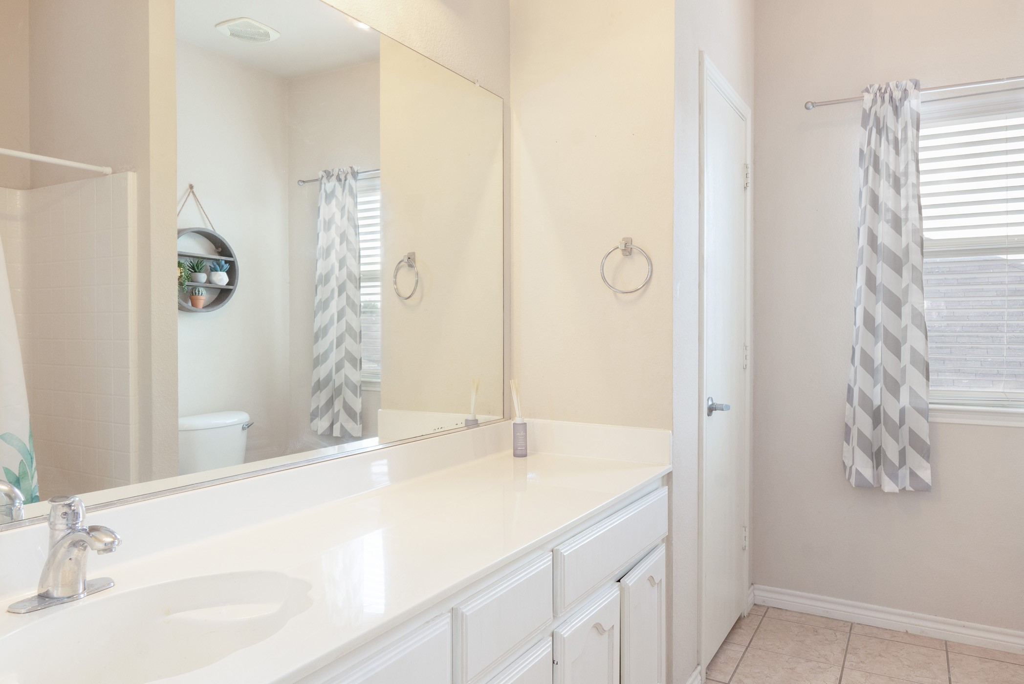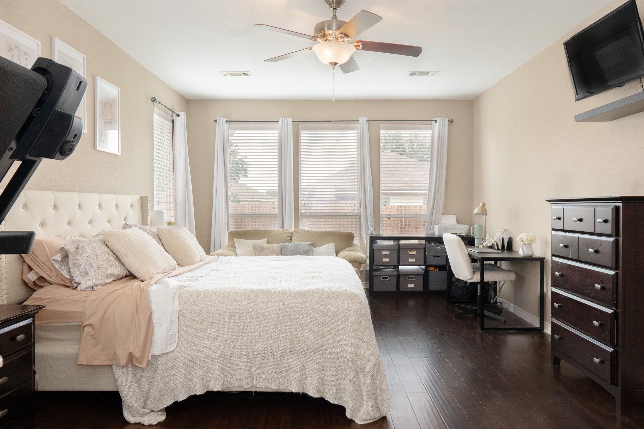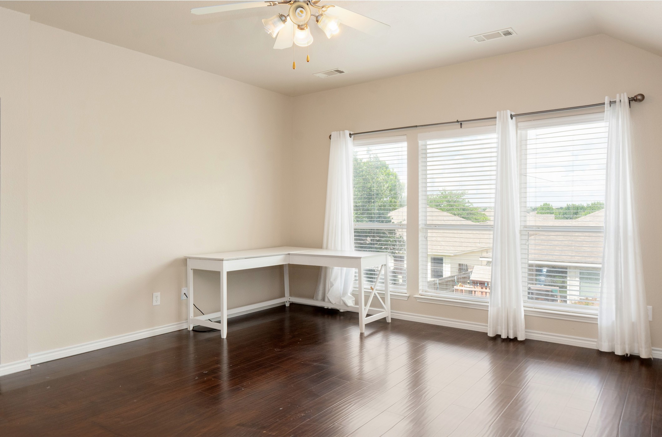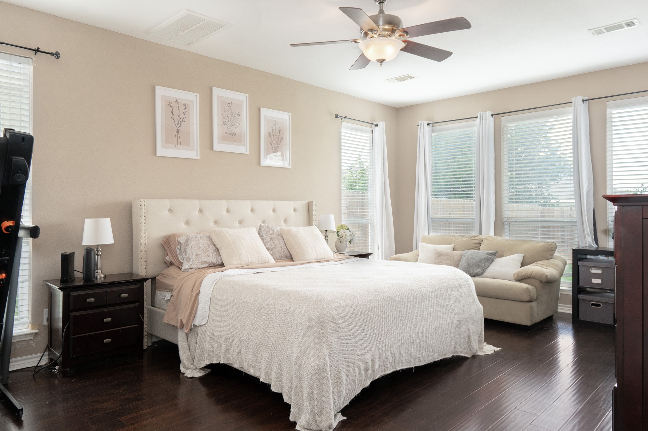 Welcome to this beautifully updated 4 bedroom, 2.5 bathroom home located in the desirable Sendera Ranch community. With two spacious living areas and thoughtfully designed floor plan, this home offers both comfort and functionality or modern living. The primary bedroom is conveniently located downstairs, providing a private retreat with an en-suite bath. Upstairs, you'll find the three secondary bedrooms and an additional living area-perfect for a game room, media room, or second family space. Enjoy cooking in the stylish kitchen featuring warm butcher block countertops and plenty of prep space. Fresh interior paint and gleaming hardwood flooring throughout the main areas add to the home's charm and move-in ready appeal. Located in a master planned neighborhood with access to community pools, parks, and walking trails, this home truly has it all. Don't miss your chance to own a beautiful home in highly sought-after Sendera Ranch.