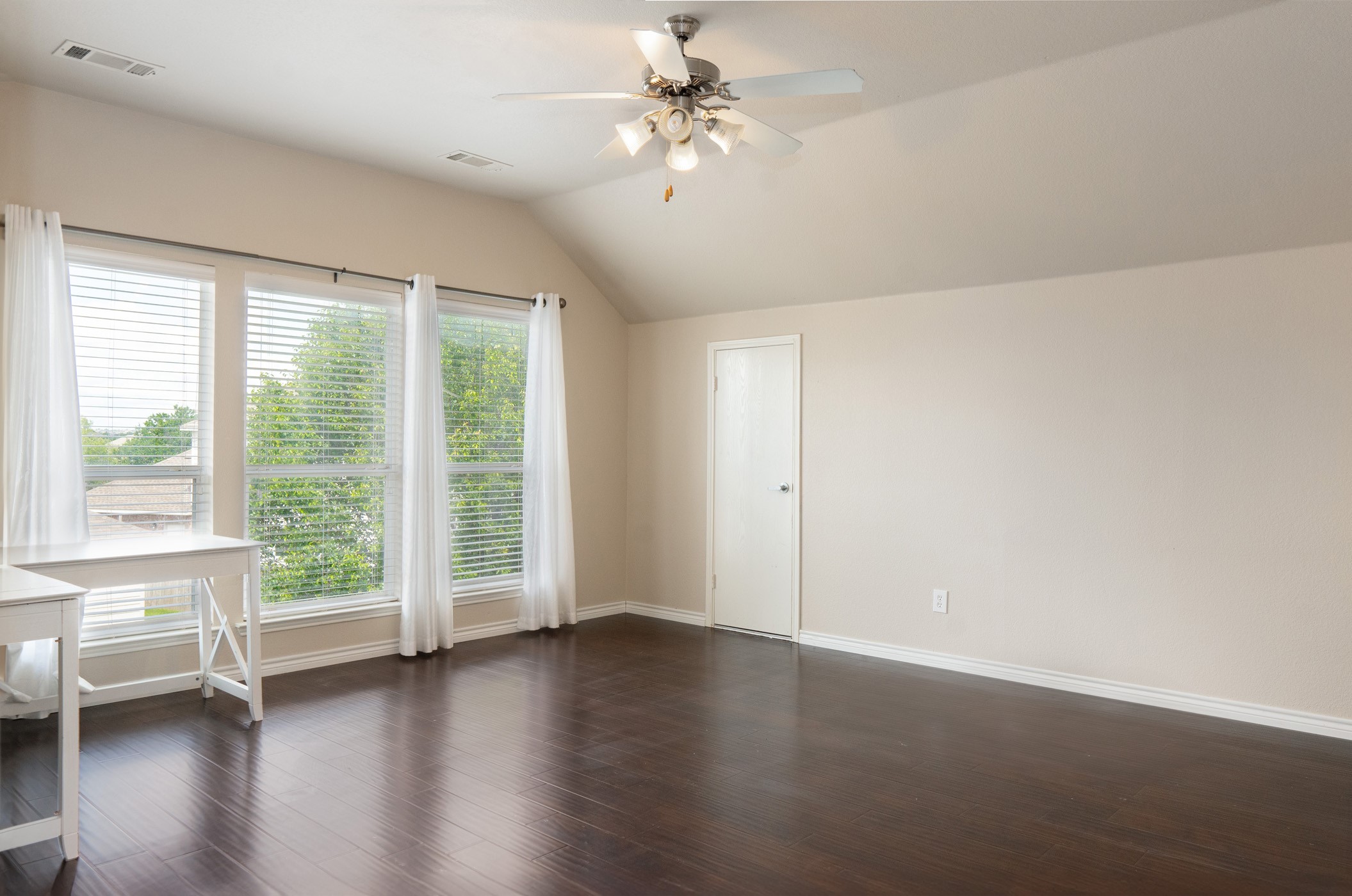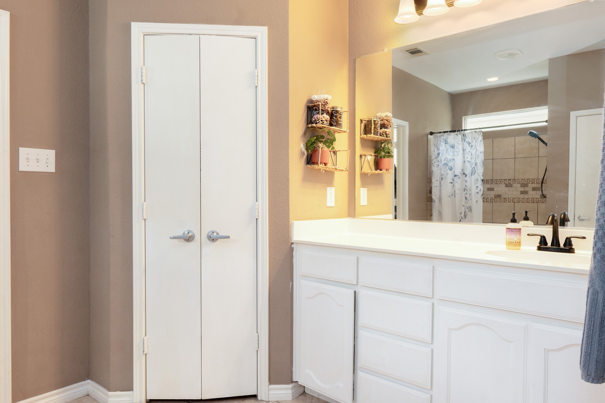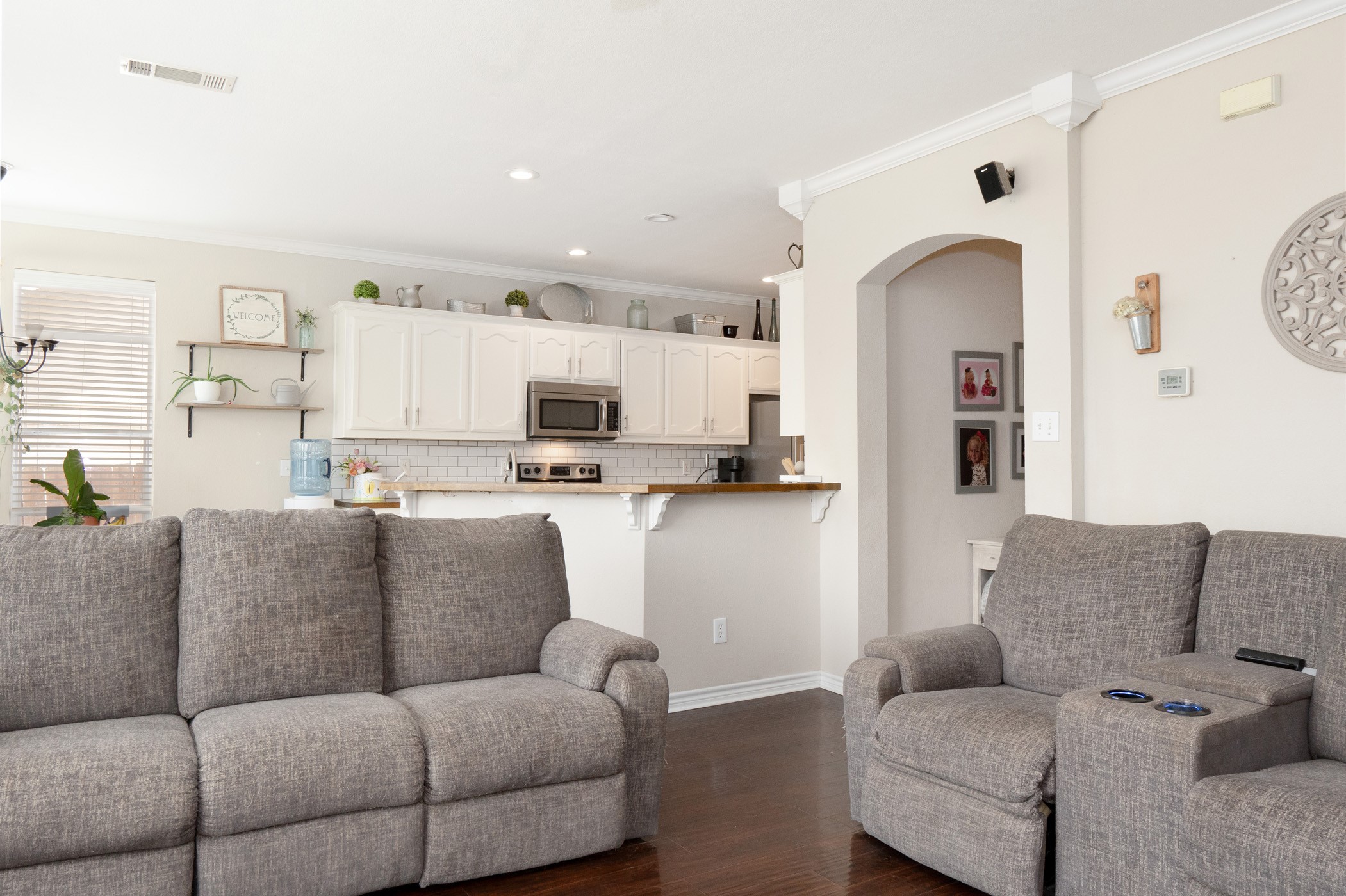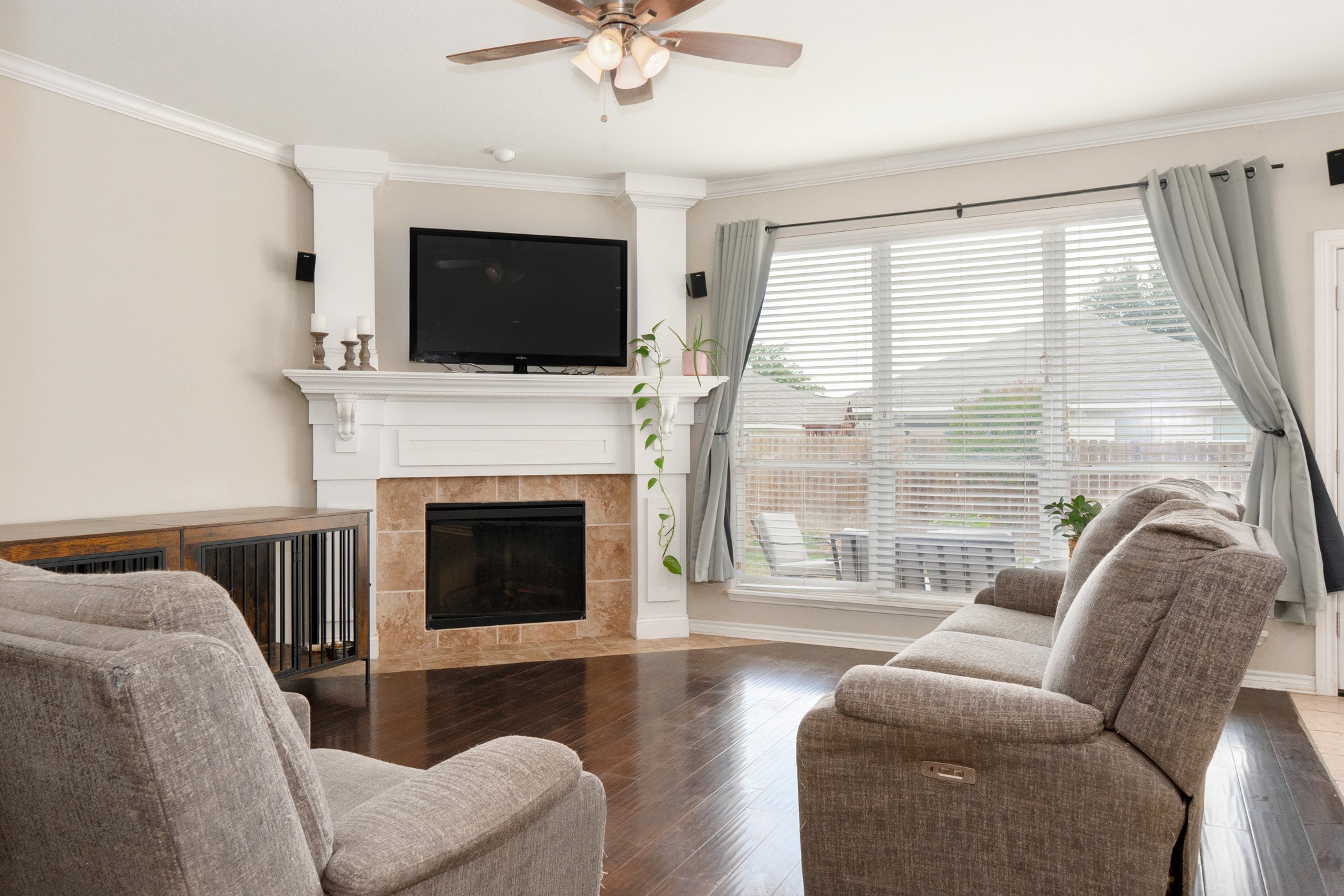 Welcome to this beautifully updated 4 bedroom, 2.5 bathroom home located in the desirable Sendera Ranch community. With two spacious living areas and thoughtfully designed floor plan, this home offers both comfort and functionality or modern living. The primary bedroom is conveniently located downstairs, providing a private retreat with an en-suite bath. Upstairs, you'll find the three secondary bedrooms and an additional living area-perfect for a game room, media room, or second family space. Enjoy cooking in the stylish kitchen featuring warm butcher block countertops and plenty of prep space. Fresh interior paint and gleaming hardwood flooring throughout the main areas add to the home's charm and move-in ready appeal. Located in a master planned neighborhood with access to community pools, parks, and walking trails, this home truly has it all. Don't miss your chance to own a beautiful home in highly sought-after Sendera Ranch.