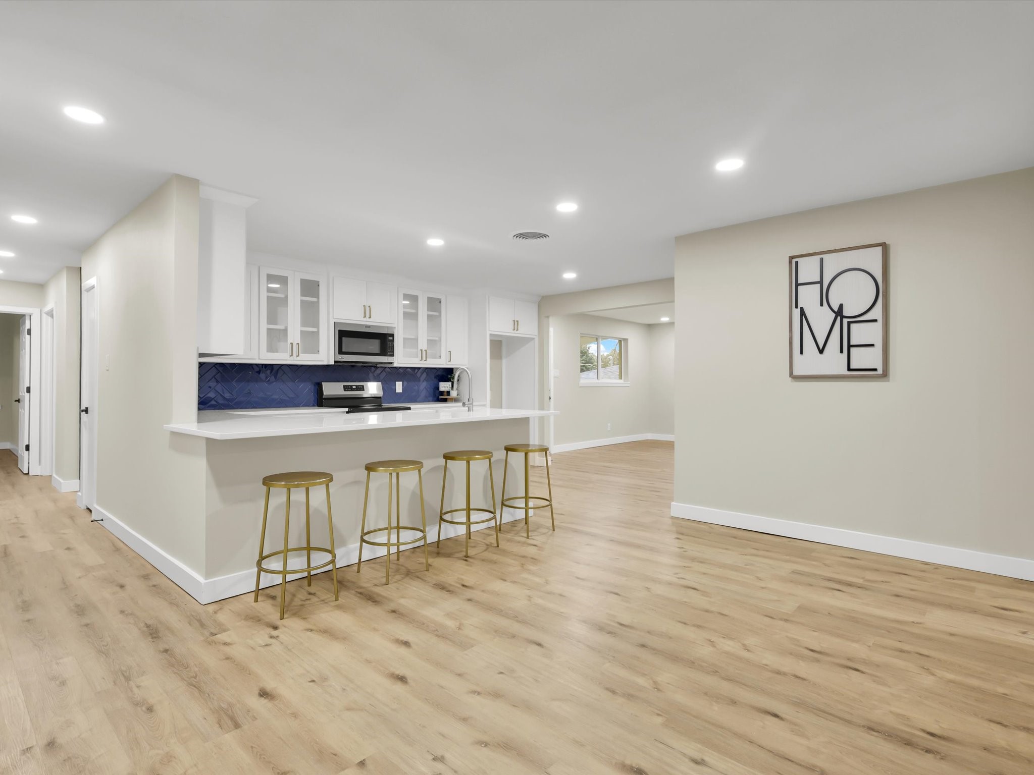 Newly renovated 4-bed, 2-bath, 2-car, home in a prime location of The River District! NEW ROOF, NEW HVAC, NEW WATER HEATER, Move-in ready and tons of brand-new features, NEW fresh paint, NEW floating floors throughout, NEW LED lighting, NEW windows that flood the space with natural light as well as updated bathrooms. The modern kitchen boasts NEW granite top, gold accents, NEW sleek custom cabinetry, and a stunning navy-blue herringbone backsplash. Updated bathrooms offer contemporary finishes with a modern paint scheme and trendy tile. Enjoy a spacious walk-in pantry with accent tile, full-size laundry room, two-car garage, large walk-in shed with power, backyard patio to entertain, grill and spend time with your loved ones. Conveniently located near 7th street, River District, Downtown Fort Worth, highways, local eateries, and Lockheed Martin, this home offers easy access with a charming small-town feel.
