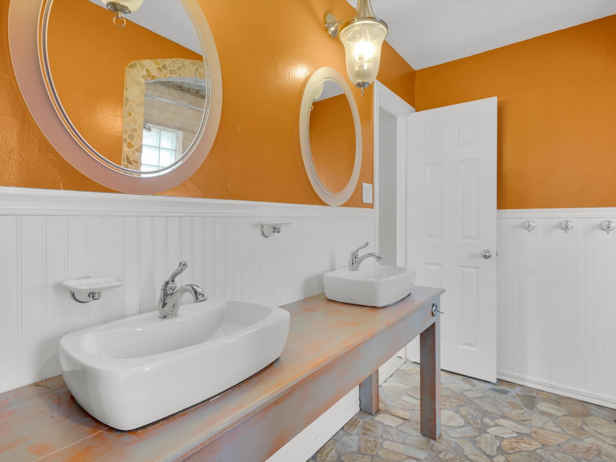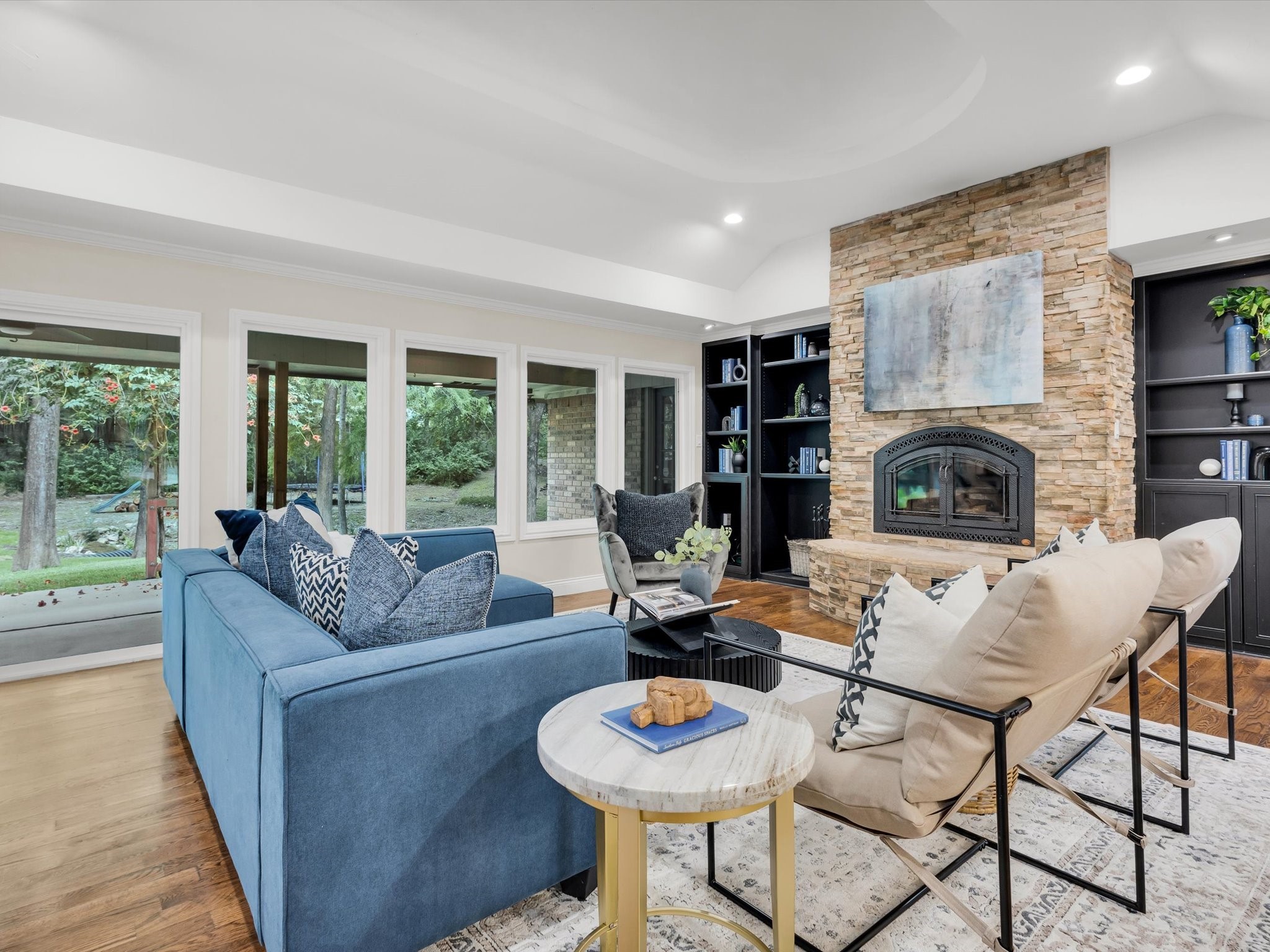 Seller is offering up to TWO MONTHS LEASE ,UP FRONT in order to sell your home, before buying and open to creative financing! BRING AN OFFER! RARE FIND on a private, heavily treed nearly an-acre cul-de-sac lot in Lake Country Estates--complete with a running stream, custom built bridge, sand box, NO rear neighbors. Drink your morning coffee and enjoy the serenity of deer and wildlife in your backyard. This backyard is a true show stopper that you will LOVE! This beautifully updated home is the perfect setting for your family gatherings, offering a spacious main living area with a stunning focal-point, Superior- wood burning stove-fireplace that will keep the entire home warm, built-in cabinets, mudroom area, and a wall of windows that frame the peaceful backyard, allowing ALL the natural light.