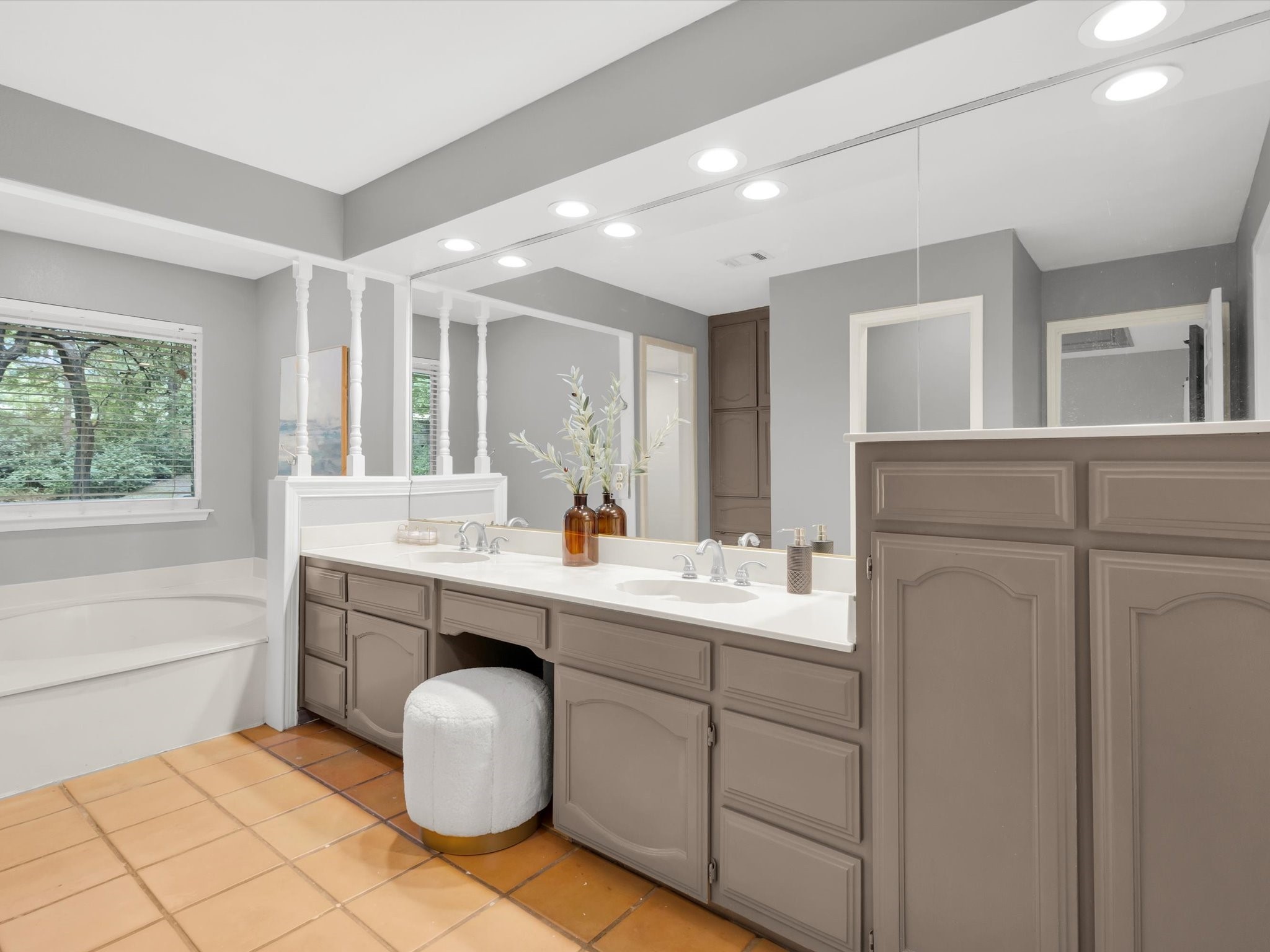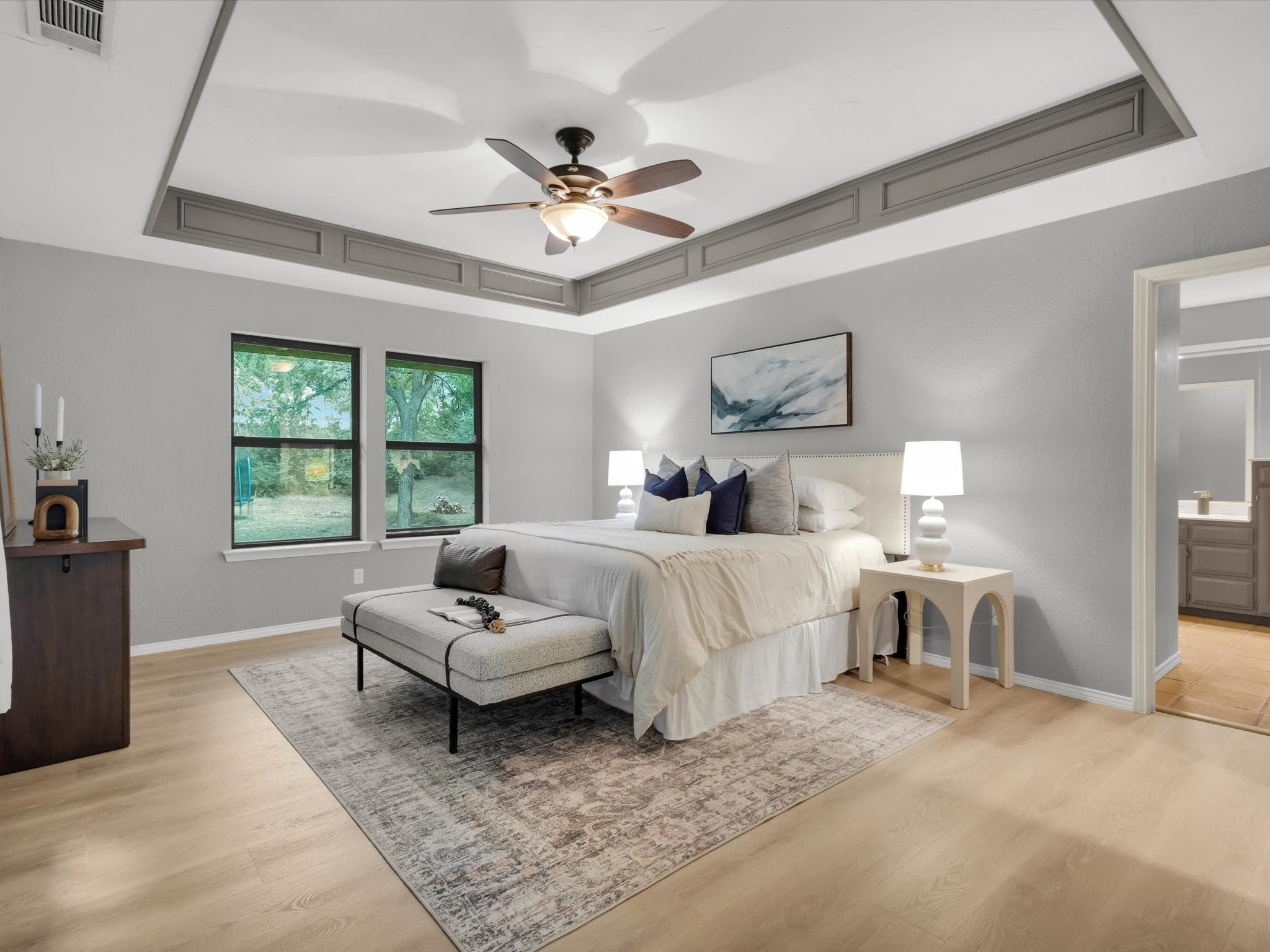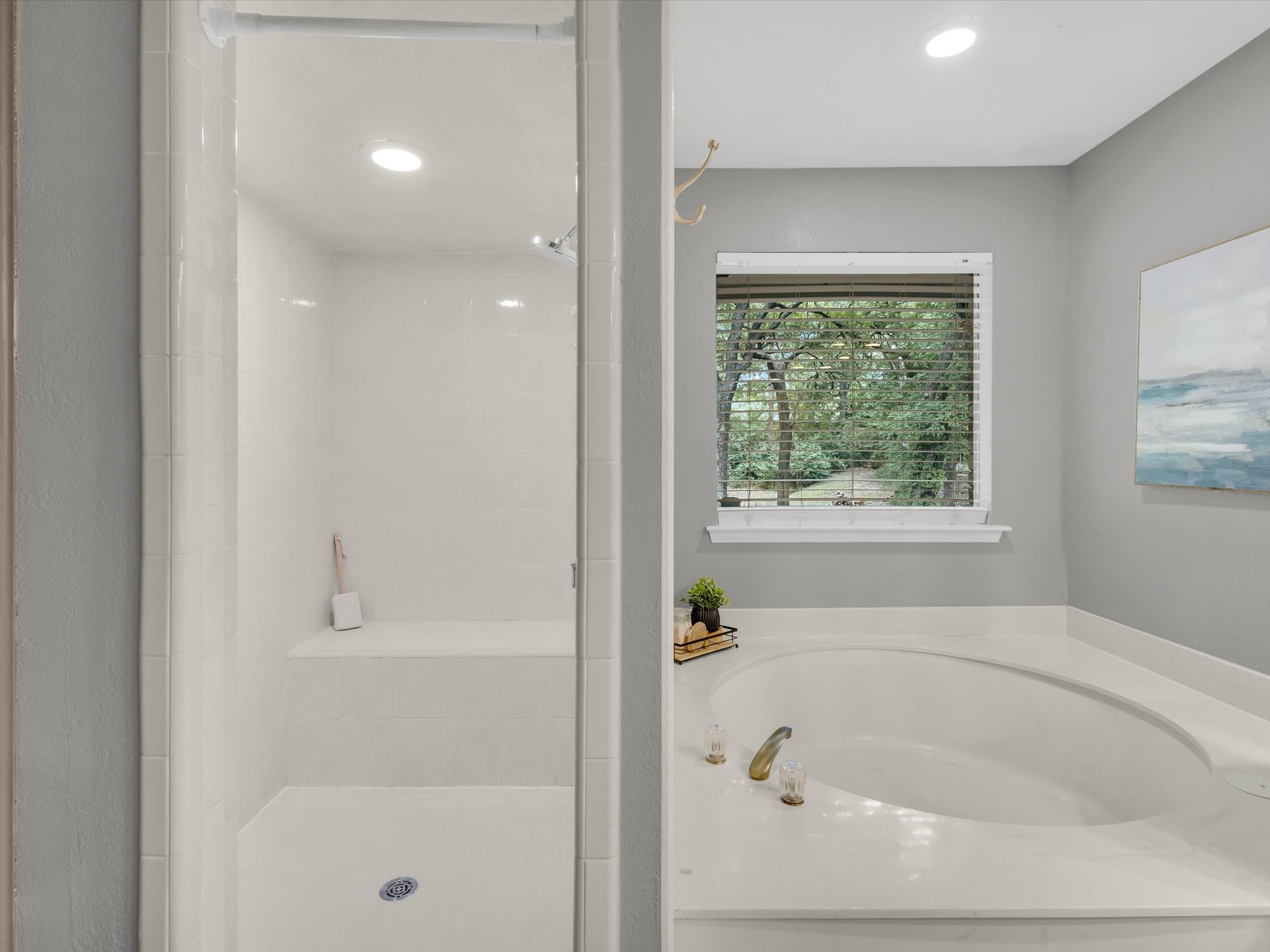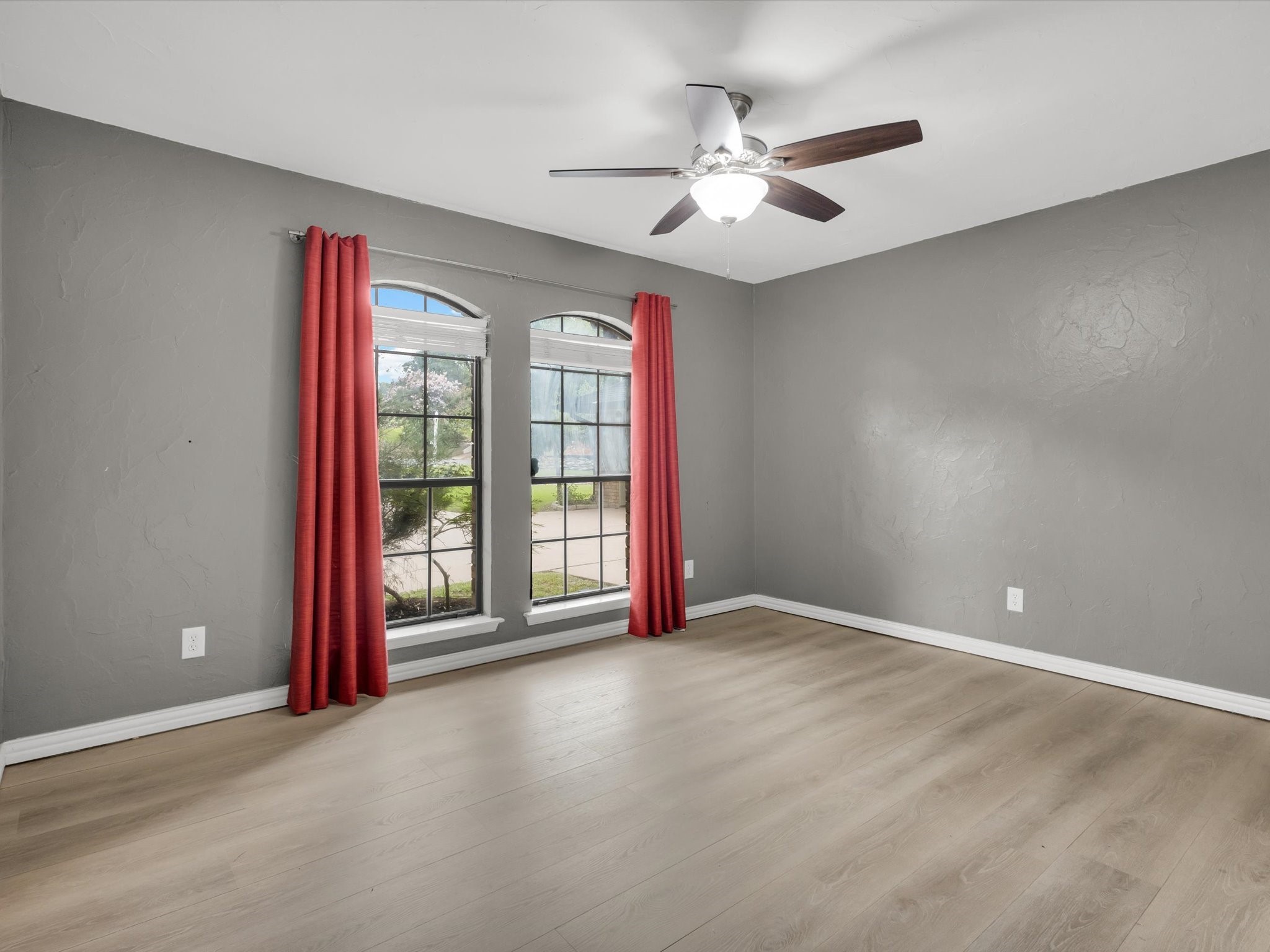 This versatile layout features 4 bedrooms, 3 full baths, including a split guest suite for privacy. The primary suite includes a bonus study or flex space--perfect for a home office, nursery, or sitting area, also offers private access to the back patio. Enjoy quiet evenings, listing to the water run, on the covered back patio surrounded by nature or dip in to your private hot tub. This home brags a new roof, tankless water heater, new floors, fresh landscaping and ample amount of storage.